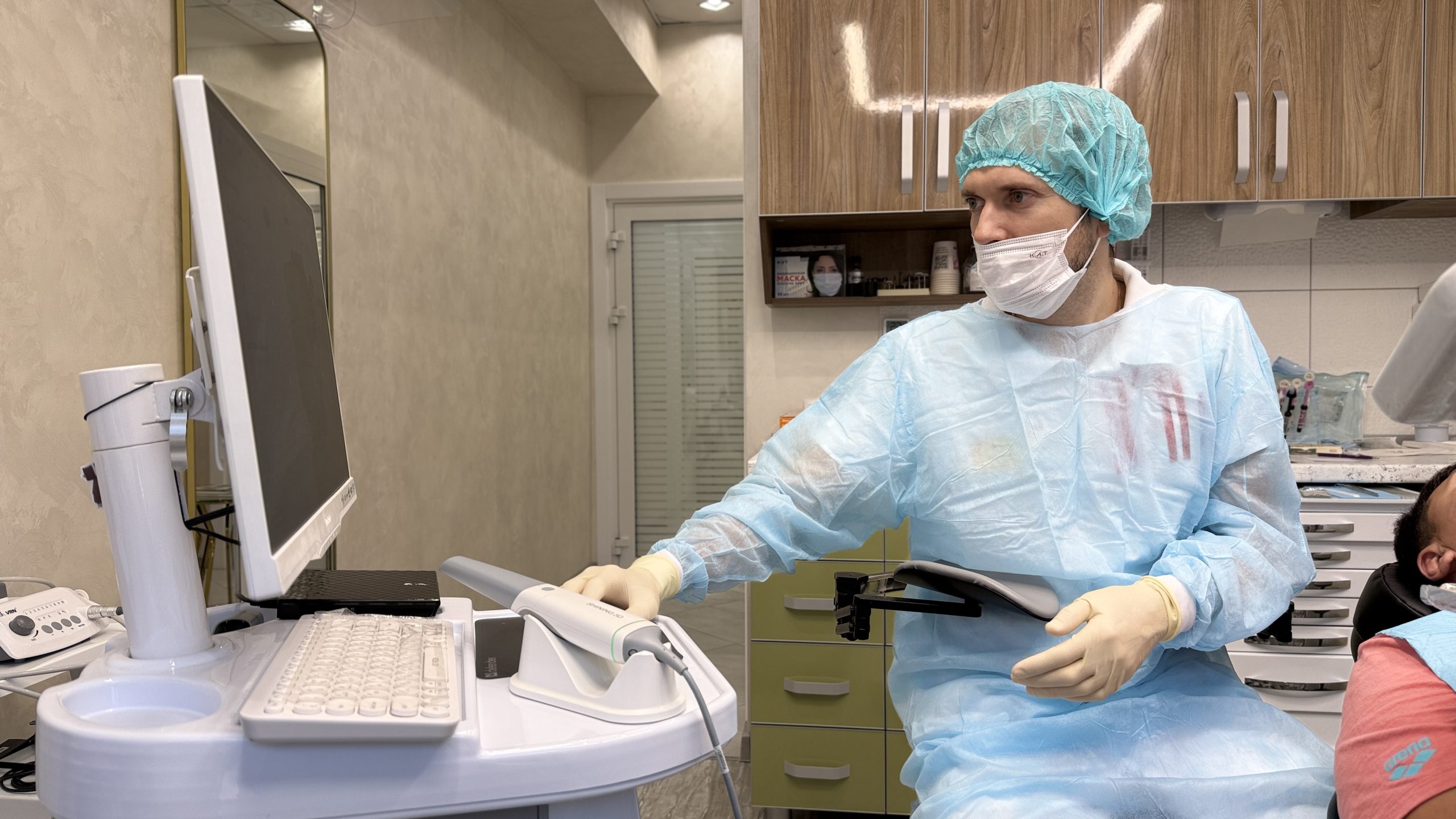 Левченко Давид Михайлович проводит операцию имплантации на верхней и нижней челюстях. Пациентка приехала к нам из Москвы, очень переживала, но как мы видим, операция идет в спокойной комфортной атмосфере. А после пациентка сможет прийти в себя в уютной комнате под присмотром наших медсестёр.
